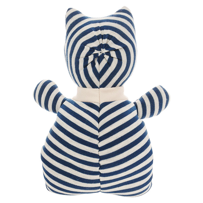 Кот Полосатик очень легкий. Сделан из полиэфирного волокна, искусственного меха и полистирола. Гипоаллергенен и безопасен для малышей.